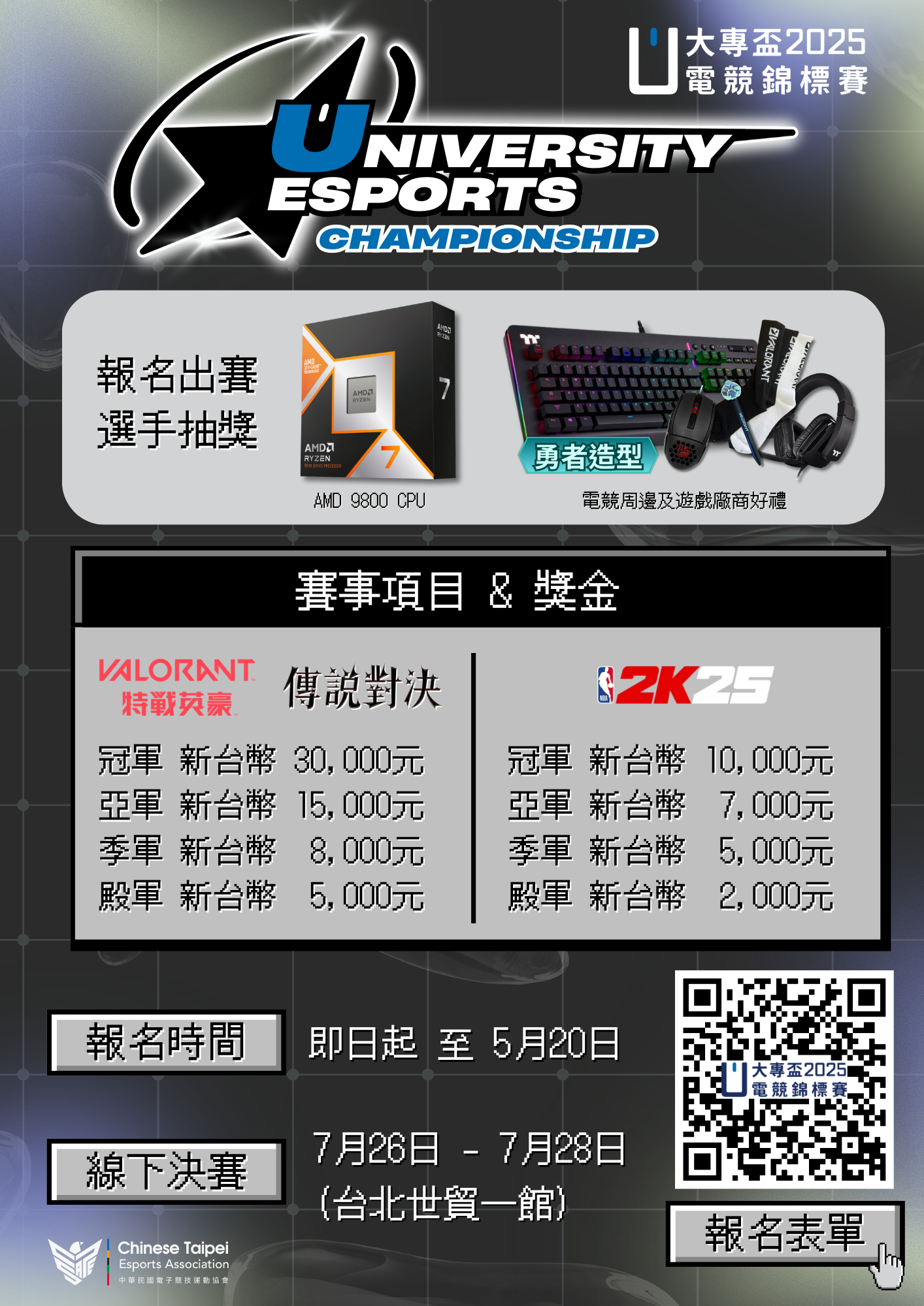 (四)賽事項目: NBA 2K25(個人)、傳說對決(團體)、特戰英豪(團體)。
