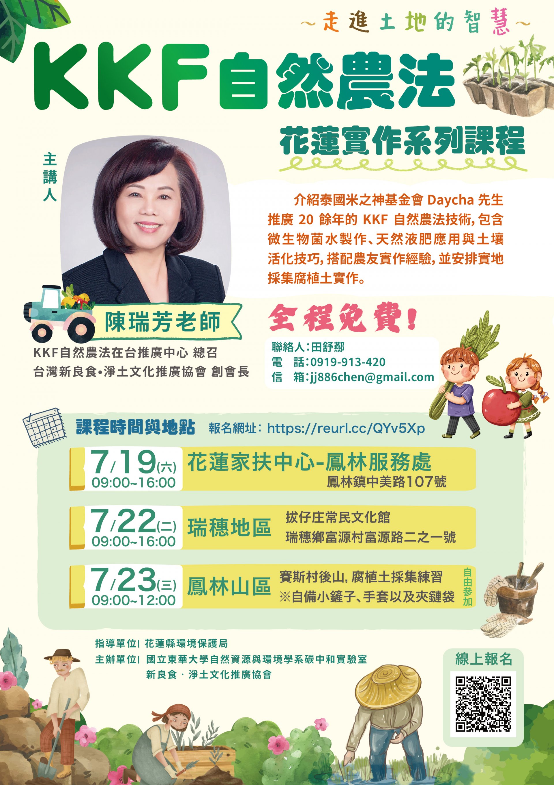 (一) 課程日期: 7 月 19 日(六) 09 : 00-16 : 00 ,花蓮家扶中心-鳳林服務處(花蓮縣鳳林鎮中美路 107 號)。