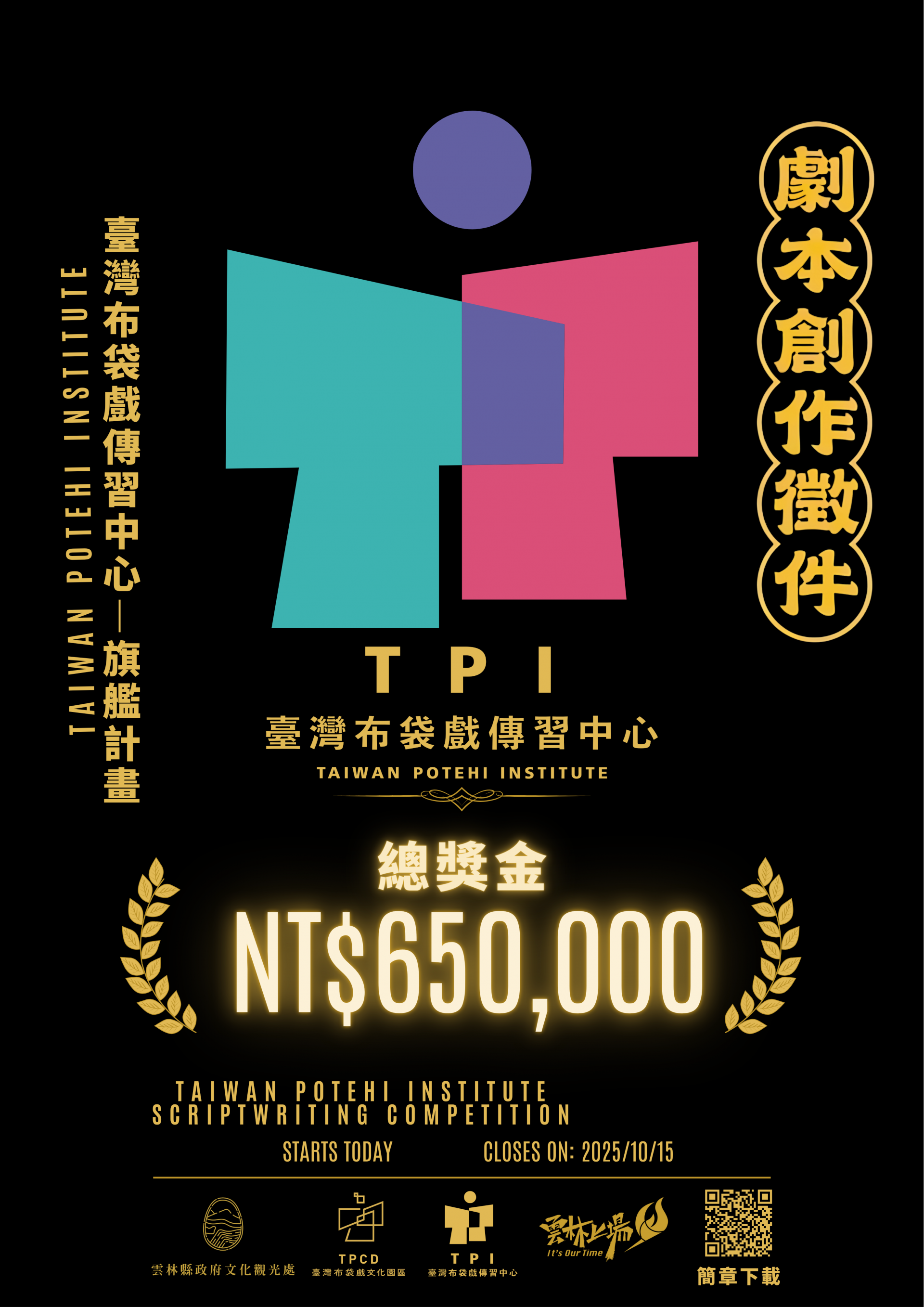三、本計畫報名期間自公告日起至 114 年 10 月 15 日止(郵戳為憑)。總獎金補助新臺幣 65 萬元整,第一名 30 萬元、第二名 15 萬元、第三名 10 萬元,另設佳作 2 名,各獎金 5 萬元。入選作品將有機會參與後續與布袋戲表演團隊之媒合製作、排練、演出發表及巡迴推廣等計畫,誠摯邀請熱愛創作之創作者踴躍報名參與。