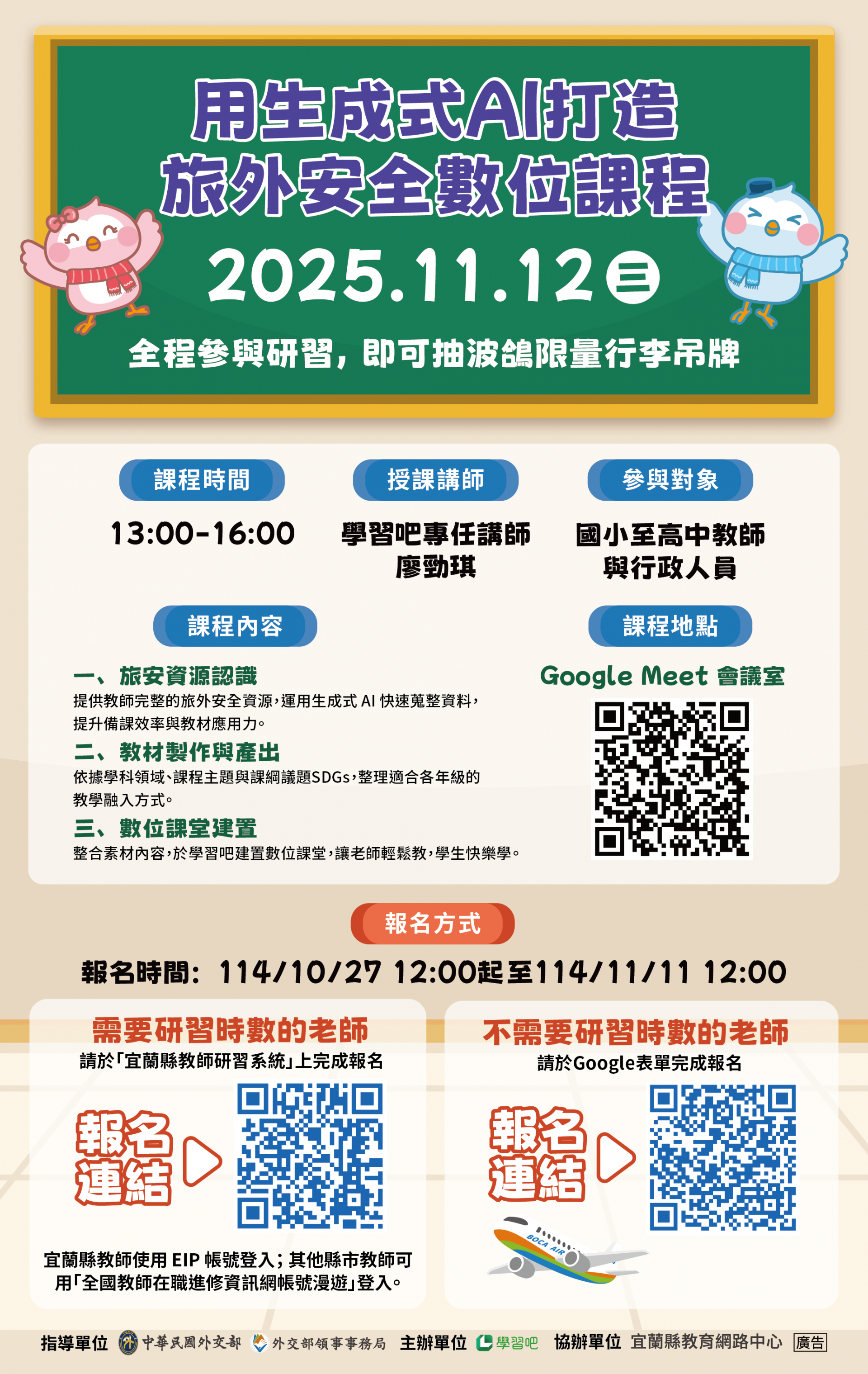 3、    報名時間: 114 年 10 月 27 日 12:00 起至 114 年 11 月 11 日 12:00 止。