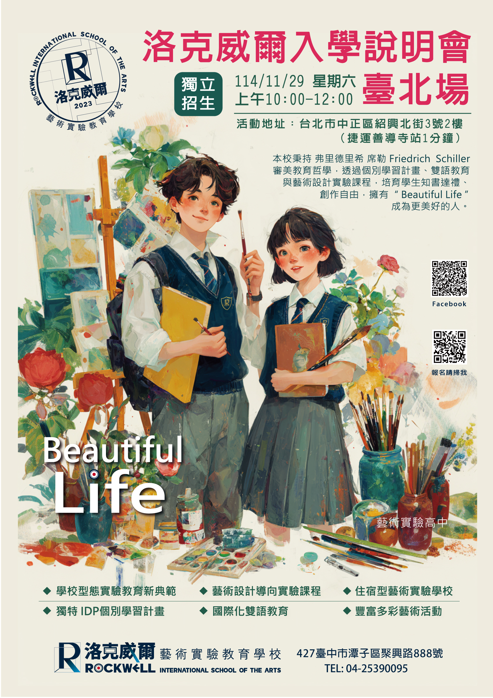 轉知 臺中市私立洛克威爾藝術實驗教育學校「115學年度入學說明會—台北場」活動訊息
