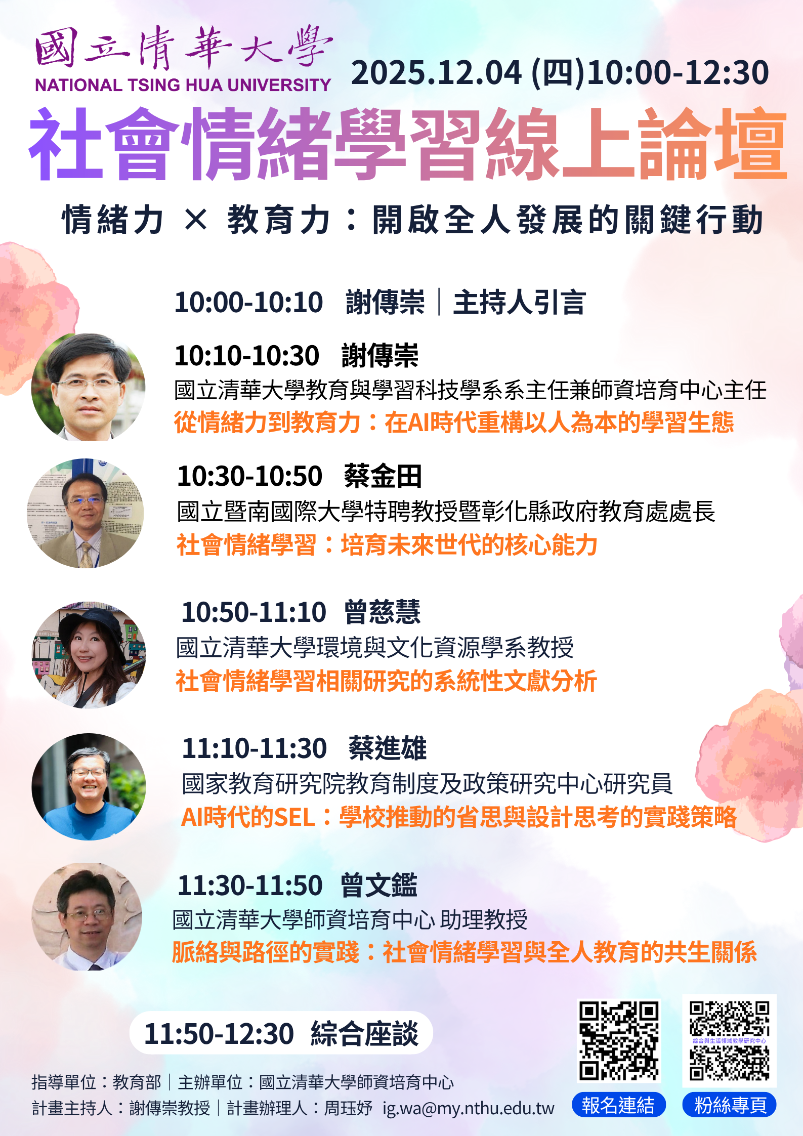 國立清華大學師資培育中心辦理「社會情緒學習線上論壇-情緒力 × 教育力:開啟全人發展的關鍵行動」線上論壇