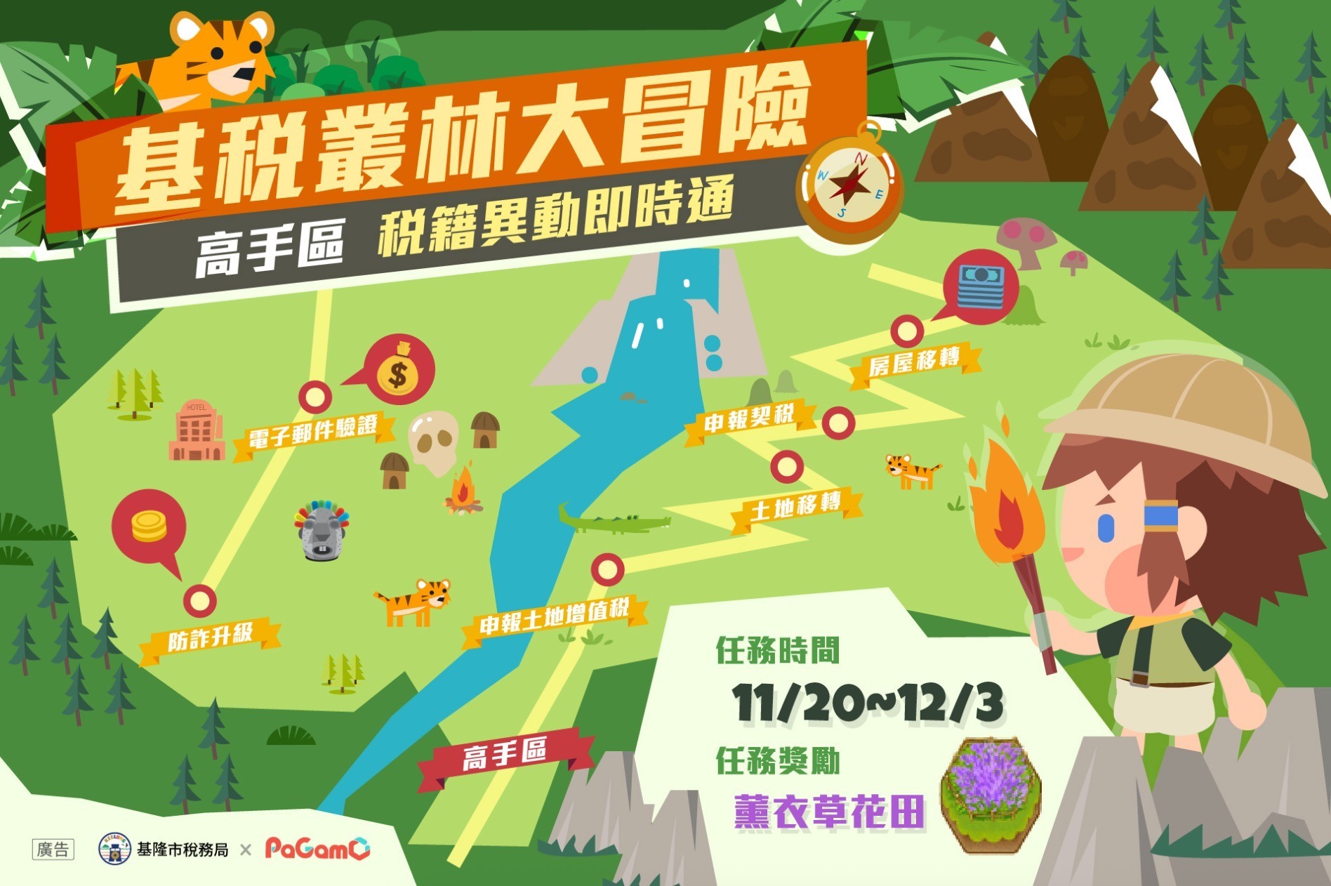 三、活動辦法:在活動期間內登入 PaGamO 線上學習平台,至任務書點選「世界任務」,選擇「基稅叢林大冒險-高手區」任務書,完成第二階段可獲得薰衣草花田作為任務獎勵,以 Open ID 登入之基隆市公私立國小、國中生,前 150 名完成「基稅叢林大冒險-高手區」系列任務即可獲得超商商品卡 250 元。